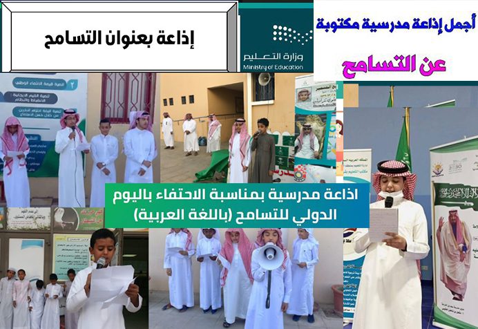 أعلنت وزارة التعليم السعودية، عن برنامج الاحتفاء باليوم الدولي للتسامح ونبذ العنف، ودعت كل مناطق المملكة، لحث المدارس على تنفيذ برامج للاحتفاء بيوم التسامح، ونقدم في هذا المقال، مجموعة من الإذاعات المدرسية كاملة الفقرات عن يوم التسامح ونبذ العنف.